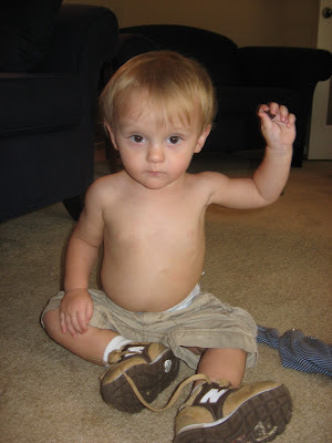 Levi's new thing involves putting this around his neck all the time. It's just too cute when he finds Zach's ties.